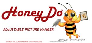 The patented (11,622,639) HoneyDo® adjustable picture frame hanger was developed by the inventor out of frustration when trying to hang 4 wire-backed picture frames across a wall at the exact same height. The wires are never precise and cause a great deal of grief when precision picture frame hanging height is required.